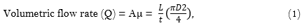 Where Q=Volumetric flow rate, L=Length of pipe, t=time, and D=diameter of the pipe.