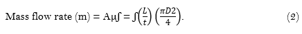 The mass flow rate was determined by using the method described by Rao, 2008, The mass flow rate was determined by allowing a known mass (50g) of the fluidized sample to flow through a pipe of a determined length and diameter. The mass flow rate calculated was in g/s by taking the product of the cross-sectional area of pipe (A), the velocity (μ) and the density of the fluidized same at the time taken (t) for the sample to one end of the pipe to the other.