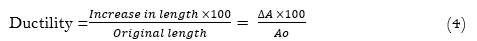 The volumetric flow rates, fluctuated at the different temperatures used for this study. The VFR was found to be 81.68±0.8cm3/s at 800C, the VFR increased to 89.38±0.16cm3/s with the increase in temperature to 1000C, and a decrease in the VFR was noticed with the increase in temperature above 1000C. Hence, at 1200C the volumetric flow rate was 84.69±0.24cm3/s. The mass flow rate (MFR) also fluctuated on fluidization of the samples at temperatures of 800C, 1000C and 1200C with the MFR of 45.51g/s, 43.79g/s, and 46.02g/s respectively. The viscosity was high at 1000C (554,835.36 Cp), but decreased to 483,654.28Cp at 1200C, though it had a value of 484.38Cp at 800C, this is not in conformity with the report given by Rao, (2012). Ductility defines the extent of permanent deformation with respect to stress in tension. The ductility of the sample showed that there was an increase linearly wianth increase in temperature. Hence the temperature in this study brought about the deformation in the sample (AYB).
