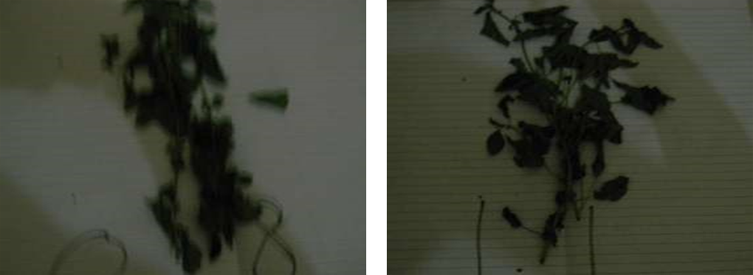 It can be observed from Figure 2 that most (98%) of the vegetables wilted on the 24th hour after harvesting, however, fewer leaves from Amaranthus cruentus and Corchorus olitorius at an application rate of 1.1 tonnes per hectare were partly fresh. According to Abukutsa-Onyango (2002), most African leafy vegetables are highly perishable and have a shelf life of less than 24 hours.  After 24 hours of storage, most of the vegetables had wilted.  Wilting is a result of a reduction in cell turgor that reduces the turgidity of the plant. There were no significant changes in the green colour of the leaves. This may be a result of the absence of ethylene in the storage room.  Ethylene accelerates senescence and loss of green colour in leafy vegetables. It decreases the storage life and quality of vegetables. All the samples finally dried up 48 hours after harvesting. The high moisture content in the two leafy vegetables resulted in the short shelf life of the vegetables leading to (98%) wilt within 24 hours of storage and total dryness within 48 hours of storage.