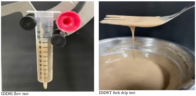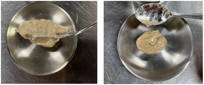 Figure 1. The example of purees that pass the IDDSI fork drip test (Left) and the IDDSI spoon tilt test (Right).