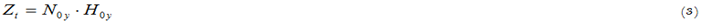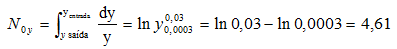 Where: H0y the height of a transfer unit, obtained in Figure 3 and N0y the number of transfer units, being quantified by Equation 4 as a function of gas flow (G) and liquid (L).