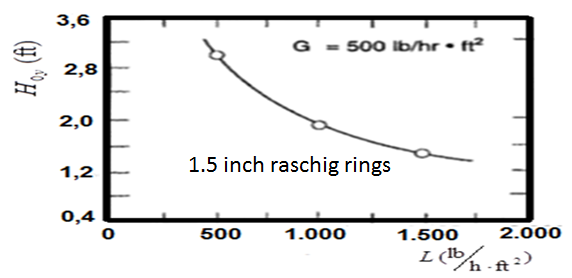 The height of the transfer unit is obtained from Figure 3, yielding: HOy = 1.9 ft and using Equation 3, the column height should be 8.8 ft (2.7 m).