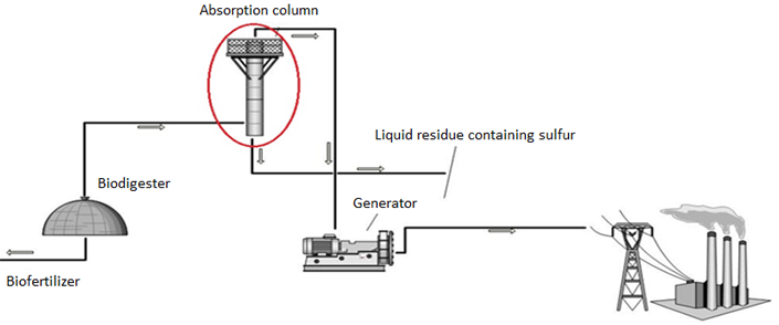 This study contributes in the existing literature to use biogas for energy use and to perform an absorption column design to avoid corrosion by hydrogen sulfide gas. The project was developed for application in a unit installed in a farm in the city of Uberaba in Brazil.