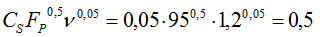 With Gx and Gy flows, the viscosity of the solution, and the superficial gas velocity 0.44 m/s (1.45 ft/s), calculate CS = 0.05; the value of the abscissa is measured at 0.052 and: