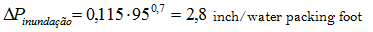 Using Figure 1 is obtained: ∆P = 0,06 inch/water packing foot (0.5 cm water/m). Equation 5 allows to quantify the pressure drop in the flood condition: