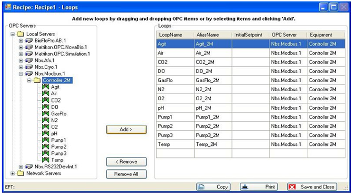 Fig-5. The generation of a new recipe and adding the control loops using BioCommand