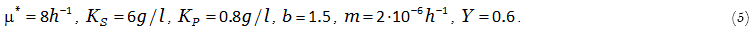 is the specific metabolic rate of the product. The parameters of the model (2)-(4) (maximum specific growth rate