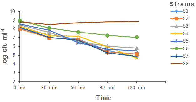 Figure-5. Tolerance of Bacillus strains to simulated intestinal juice.