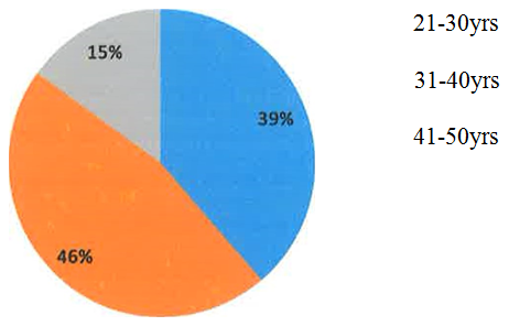 The result of the ages of respondents in the study is reported in Figure 1. It revealed that out of the 93 respondents, 36 of them representing 38.7% were between 21 -30 years while 43 of them representing 46.2% aged between 31-40 years and 14 respondents representing 15.1% were between 41-50 years.