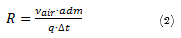 Where R is the product-air amount ratio (kg of product kg-1 of air), νair is the specific volume of air (m3 kg-1), q is the airflow (m3 h-1) generated by each cycle of pressure drop, Δt is the time interval adopted for each iteration (one hour), and adm is the amount of dry matter in the treatment chamber (kg of dry