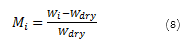 Mi is the moisture content (g g-1 dry matter, d.m.) for drying time i, Wi is the weight of the wet sample (g) and Wdry is the weight of the dry sample (g).
