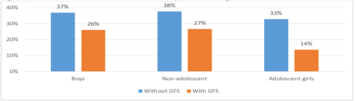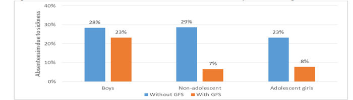 This paper provides evidence of the possible magnitude of the effects of GFS in schools. After controlling for various student characteristics, we find that the girls in schools with GFS are 15 percentage points less likely to miss a school day in the past month. The analysis indicates possible positive effects of GFS on girls’ school attendance. The results are encouraging to conduct a proper impact evaluation to assess wider set of outcomes of GFS, including attendance, dropout and learning.