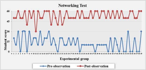 This study found statistically significant difference in learning between the experimental and control group as shown in post-test scores, with a noteworthy large effect size. Perhaps the fact that being present in the physical lab at fixed times is seen by many students as laborious and inflexible. The virtual learning environment on the other hand enabled students to study and work on their assignments anytime and anywhere. Students in the experimental group also reported that using the virtual networking simulator helped work on the same points until they understood the conceptual principles underlying them. Additionally, many students expressed their appreciation for using a virtual simulator instead of the physical lab, as it helped them to experiment when asked to deploy network problems, without the fear of messing things up.