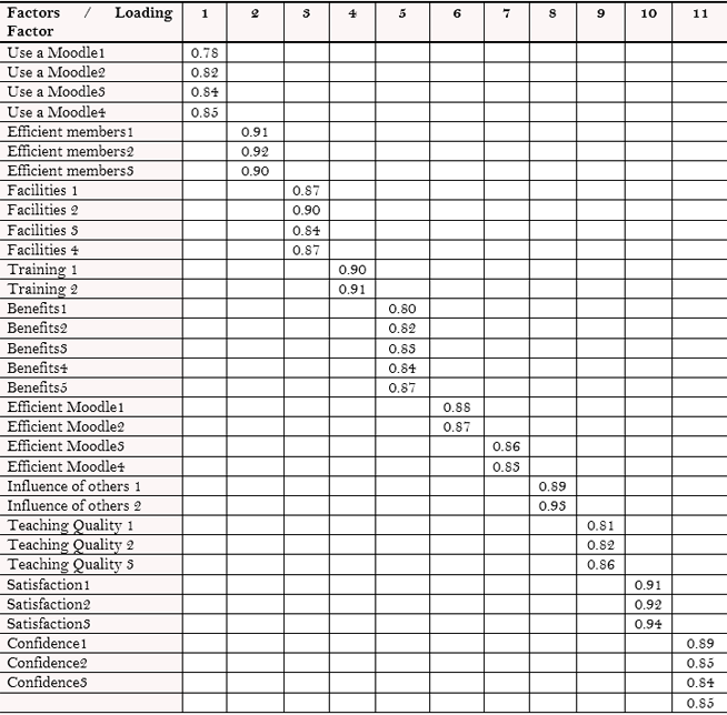 Figure 2 shows the empirical factor analysis of factors affecting the use of faculty members' use of the electronic education system (Moodle) and the results of the use .