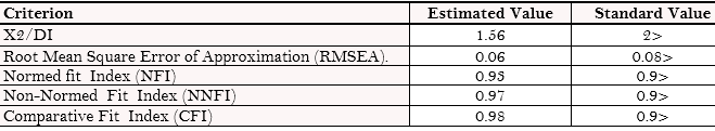Table-5 . Results of good conformity test for conformity of the structural model with the collected data.