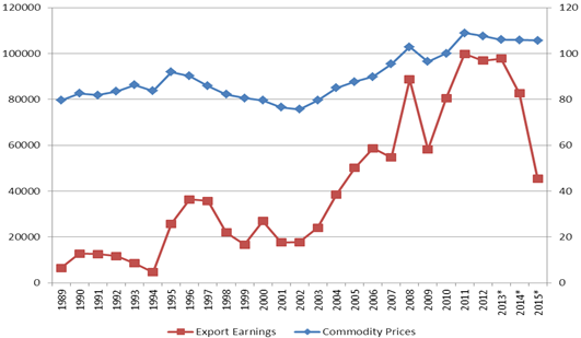 Figure-2. Relationship between Global Commodity Prices and Nigeria Export Earnings
