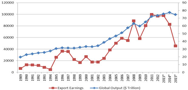 Figure-3. Relationship between Global Output and Nigeria Export Earnings