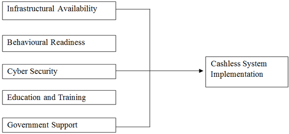 The conceptual framework presented in Figure 1, diagrammatically demonstrates the relationship between factors required for the successful implementation of cashless systems. In order to ensure effectiveness of a cashless system in Ghana, the authors argue that the availability of infrastructure, behavioral readiness, cyber security compliance, education and training of users as well as government support will contribute a great deal in guaranteeing implementation success.