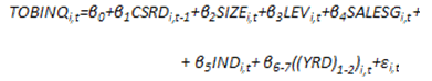 The second model tests hypothesis H1bin the interest of investigating the association between Tobin’s q ratio and CSR disclosures: