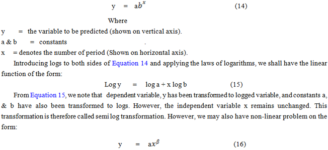 Suppose we have the non-linear function, example an exponential function for forecasting exponential growth or decay where the variable is expected to grow or decline by the same proportion or percentage in each period. This function can be given by:
