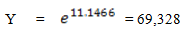 lnY = 7.0896 + 0.4057×10 = 11.1466