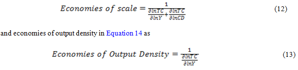 Following Filippini and Wetzel (2014) and considering KPLC is the only distribution company in Kenya1 economies of scale were defined in Equation 13 as