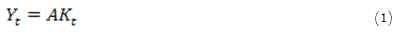 Where in equation 1, Yt reflects the degree of economic progress for the t period, while A indicates the total productivity, Kt denotes capital for the t period, which encompasses human and financial resources rather than only physical capital. Here, the gross productivity factor is equivalent to the marginal output of resources.