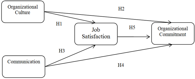 Research on organizational culture and organizational commitment conducted by Xaverius et al. (2016) entitled The Effect of Organizational Culture on Job Satisfaction, Organizational Commitment and Intention to Leave. The results of this study indicate that indirectly organizational culture has a significant positive effect on organizational commitment mediated by job satisfaction. Another research conducted by Kirimanop, Pahlevi, Umar, and Balele (2020) also found that organizational culture has a significant positive effect on an organization’s commitment. From the description above, a hypothesis can be proposed as follows: