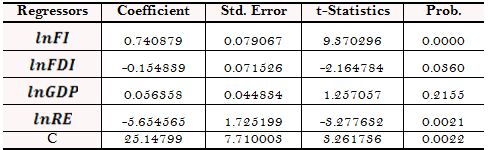 Table-6. Estimated Long run Coefficients for ARDL Model.