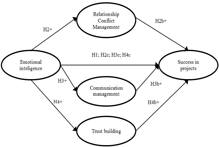 However, relating EI with PS is an initial implication, as despite having a significant influence on social situations, as well as on the feeling of trust, cooperation, and communication (Rezvani et al., 2016), it is through mediators that the influence on the result of the project manifests itself, which leads us to other hypotheses that follow.