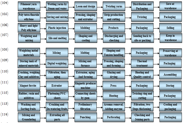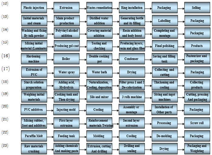 Hassanpour [20] employed fuzzy set theory to classify 21 Iranian plastic industries as a cluster study with the same issues so it was developed a classification as below for them. Congressional sheets of Polypropylene and Polystyrene > Flat sheets of Polypropylene and Polystyrene > Polyvinylchloride flooring > Polypropylene bag > Plastic bottle > Polyethylene pipes and fitting > Plastic waste recycling > Polyvinylchloride film for agricultural use > Plastic shaver > Plastic bags > Plastic rope > Polyvinylchloride shoe bed > Cellular Plastic Sheets > Polyvinylchloride pipes and joints > Plastic flashlight = Plastic buttons > Plastic Box (Fruit, Chilli) > Polyvinylchloride hose > Plastic welding artifacts > Polyvinylchloride gum > Plastic products.