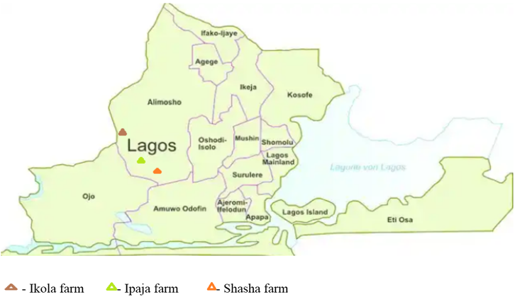 Figure 1 illustrates the map of Lagos State, Nigeria showing the study area (Alimosho Local Government Area) and sample locations.