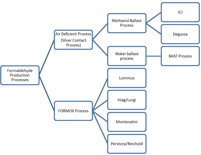 The currently used two main processes for formaldehyde production from methanol are silver contact process and the oxide process. The silver contact process can be further grouped into two types the methanol ballast process and BASF [1].