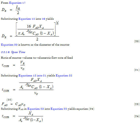 2.2.1.5. Diameter of 1- Reactor Tank (CSTR)