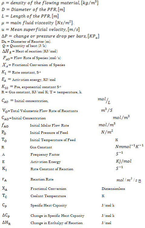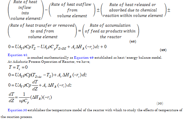 Schotborgh, et al. [4] worked on analysis of the multi tubular reactor for Formaldehyde production by one-dimensional models. The oxidation of methanol in a packed bed catalytic reactor was studied and steady state models for the temperature and mass (mole) were derived using principles of conservation of mass and energy. The developed models were solved using 4th-order Runge-Kutta Algorithm and profiles of temperature and moles fraction. The kinetic expressions followed that of Cozzolino, et al. [5] and Tesser, et al. [6]. The results indicate that Tesser, et al. [6] kinetic expression was satisfactory and gives a good description of the system than others.