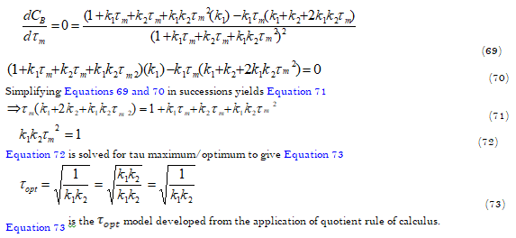 Equation 56 represent the space time parameter in the material balance Equation 55 which is simplified to give Equation 57.