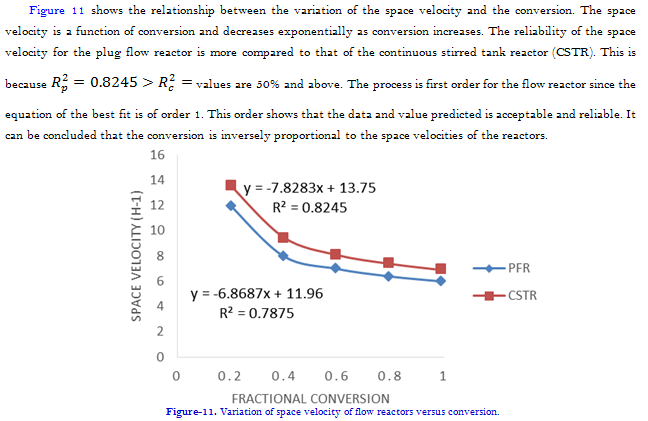 Table-2. Performance Results of PFR and 1 - Reactor Tank CSTR Parameters at 90% conversion of Methanol 1 - reactor Tank CSTR.