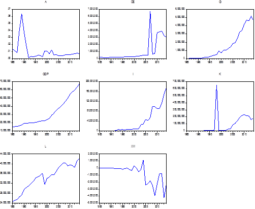 Hartley et al. (1997) explained that when computed using actual data, the Solow Residual, like the series used to compute it, has a trend and so must be detrended before being used as an input to the model. However, the real values of labour (L) cannot be subtracted from monetary value of output (Y) as much as the monetary value of capital (K). Therefore, the Solow residual cannot be used to estimate technology in Nigeria as Solow (1957) postulates.