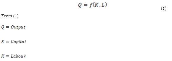 Assuming Q to be real output (Economic growth or GDP), K is total capital - capital here includes the prices of the petroleum products (PMS, DPK and AGO), and L is index of labour input. Thus, if Labour productivity is a dynamic measure of economic growth, competitiveness, and living standards within an economy, hence it is a revealing indicator of several economic indicators. If we mathematically derive it as.