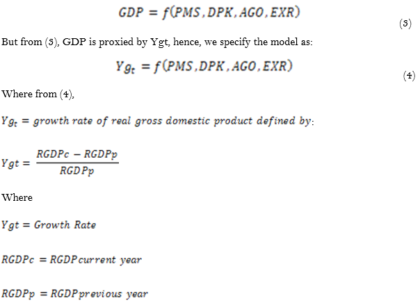 This study is about the relationship or impact of domestic fuel price and growth of Nigerian economy using PMS popularly known as fuel, DPK popularly known as kerosene and AGO popularly known as diesel as major variables since they are the most commonly used in Nigeria. Exchange rate is used as a control variable of labour. These will be used in testing the hypothesis of the model.