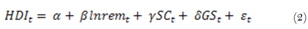 The results are stating that there is positive and significant relationship exists between human development index and personal remittances because the probability value is less than five percent level of significance. In simple words, if remittances inflow increases by one unit then our Gross Domestic Product will increase by 0.49 units.