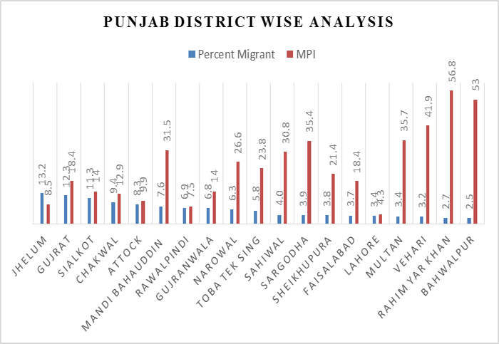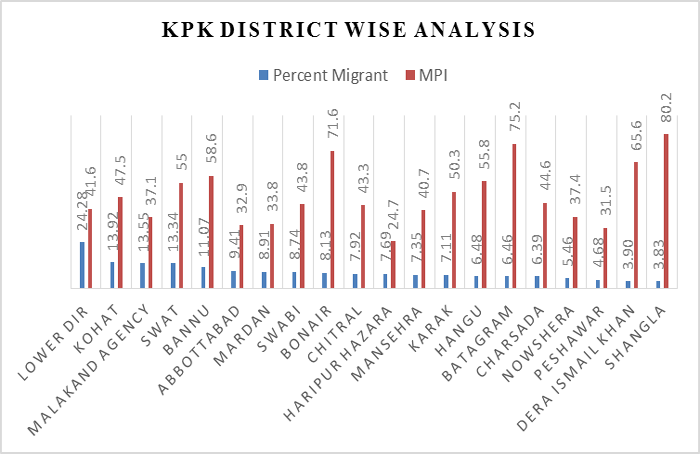 In the graphical analysis, we keenly observe the emigration of Pakistani workers on the basis of data retrieved from the Bureau of Emigration and Overseas Employment of Pakistan. We performed deep parameter analysis in this approach, for example, province wise emigration, category wise emigration, occupation-wise emigrations, protectorate wise emigration, district wise emigration, and country wise emigration. District wise analysis of all provinces states that the international migration is playing a key role in the reduction of poverty level except in KPK. This is pointing out the fact that there must be many factors other than remittances which are playing a key role in determining KPK poverty level, for example, employable tourism industry discourages them from moving abroad etc.