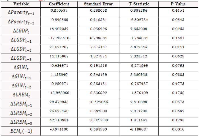 Error Correction Representation of the Selected ARDL (1,0) Model