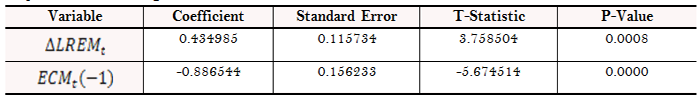 Some researchers [42] are avowing that this value should be between 0 to -1 while other [43] emphasizing that it could be close to -2. So there are no consensus on the range of error correction term but it must be negative and significant for converging towards its long-run equilibrium and existence of relationships. The short-run results presented in the following Table 19 are consistent with the long run results which mean a positive association between dependent and independent variables.