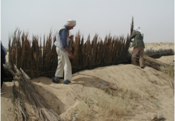 At the beginning, we conducted an appraisal to evaluate the methods undertaken to combat desertification in this region by establishing a diagnosis of the silting situation based on the inventory and the evolution of adopted techniques against silting. The main objective of the field works are the protection of the oases, the basic infrastructure, such as roads, agglomerations and cities, against sans invasion. In most cases, the nature of the field work relates to mechanical control and biological control