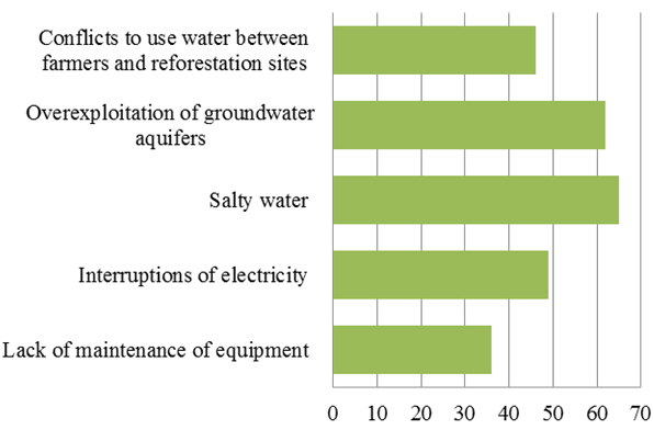 According to rural pollution, this decline of reforestation can be explained by constraints due to scarcity and poor-quality of water resources (91% of respondents), to government budget limits (46%) and to unskilled and unavailable workforce (64% of respondents) Figure 4.