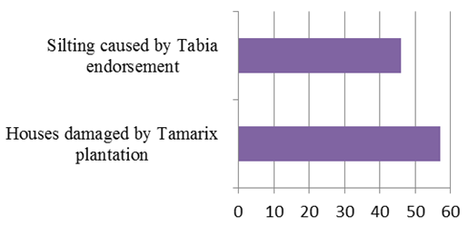 Nonetheless, we noticed that, the behavior of the local population towards these amenities against silting differs from one area to another; it is positive for some areas and negative for others. In fact, some amenities works have been damaged by some inhabitants, such as the uncontrolled sand withdrawal from Tabias. Besides, we noticed the existence of uncontrolled dumping of waste within reforestation sites.