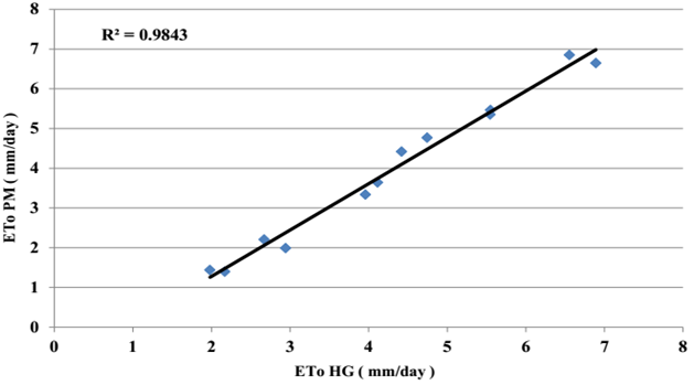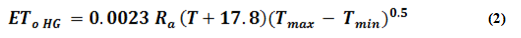 ETo calculated by applying Hargreaves ETo equation suggested by Hargreaves and Samani [12] is given as