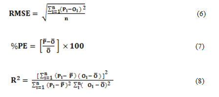 The RMSE, PE and R2 are defined in Equations 6, 7 and 8.